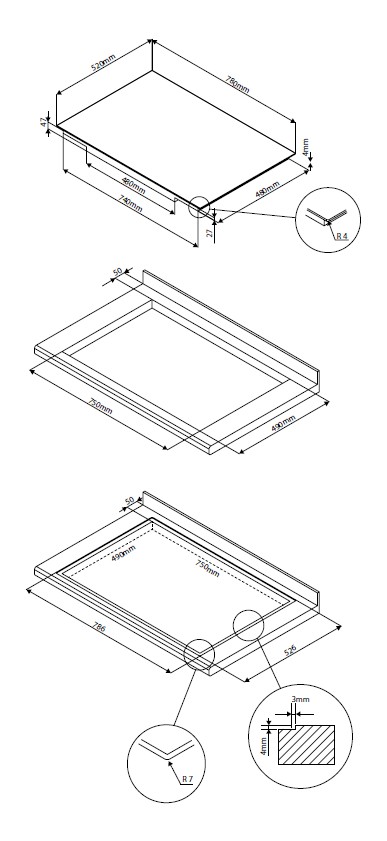- Produkt (BxDxH) 780 x 520 x 47 mm
