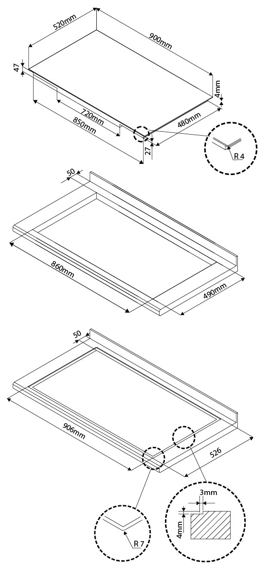 - Produkt (BxDxH) 900 x 520 x 47 mm