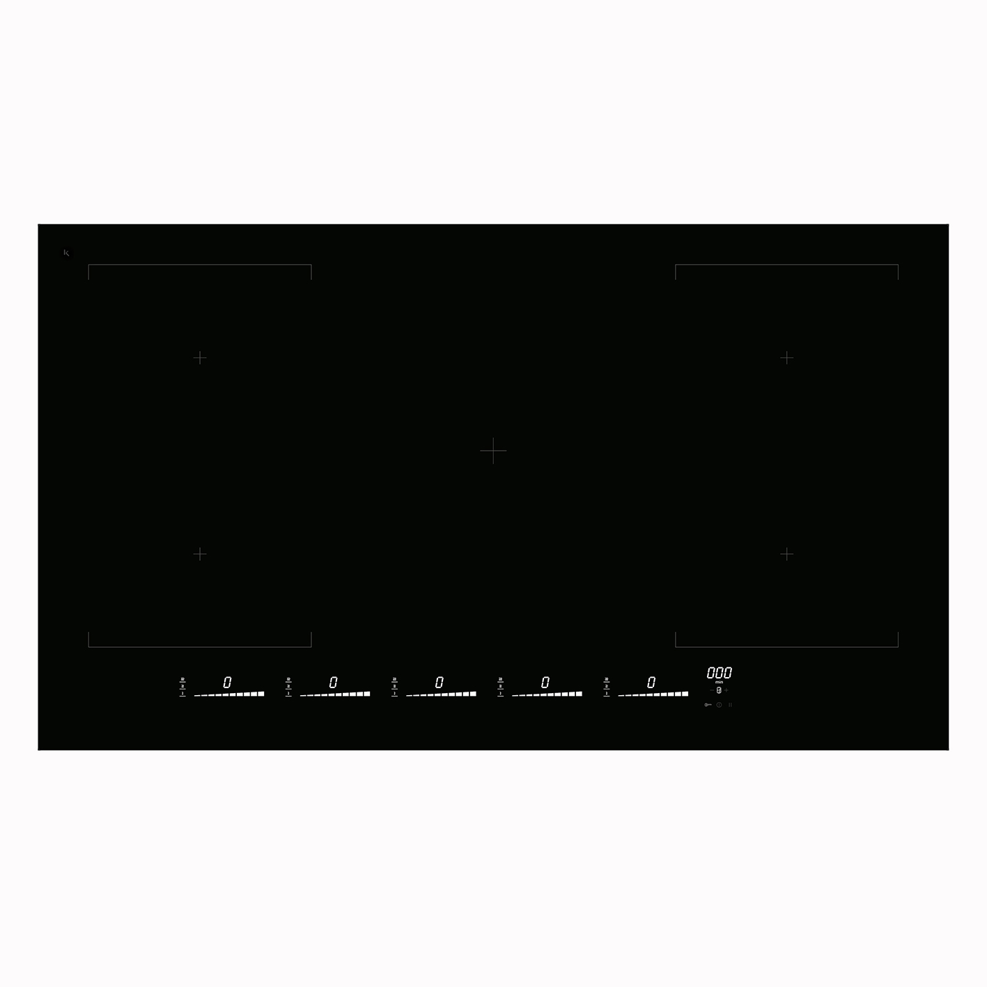 I båda sidor kan främre kokzon och bakre zonen kombineras till att användas som en stor kokzon på 22x36cm