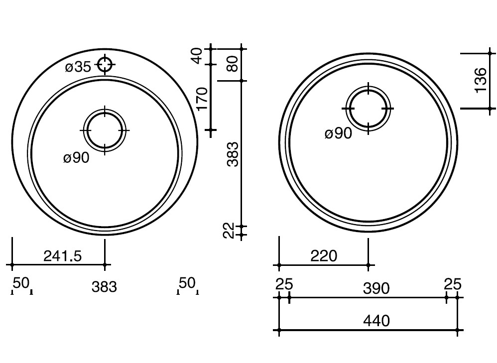 Diskho i stål, Enkel diskho utan bakre kant, För nedsänkning - Rostfritt stål