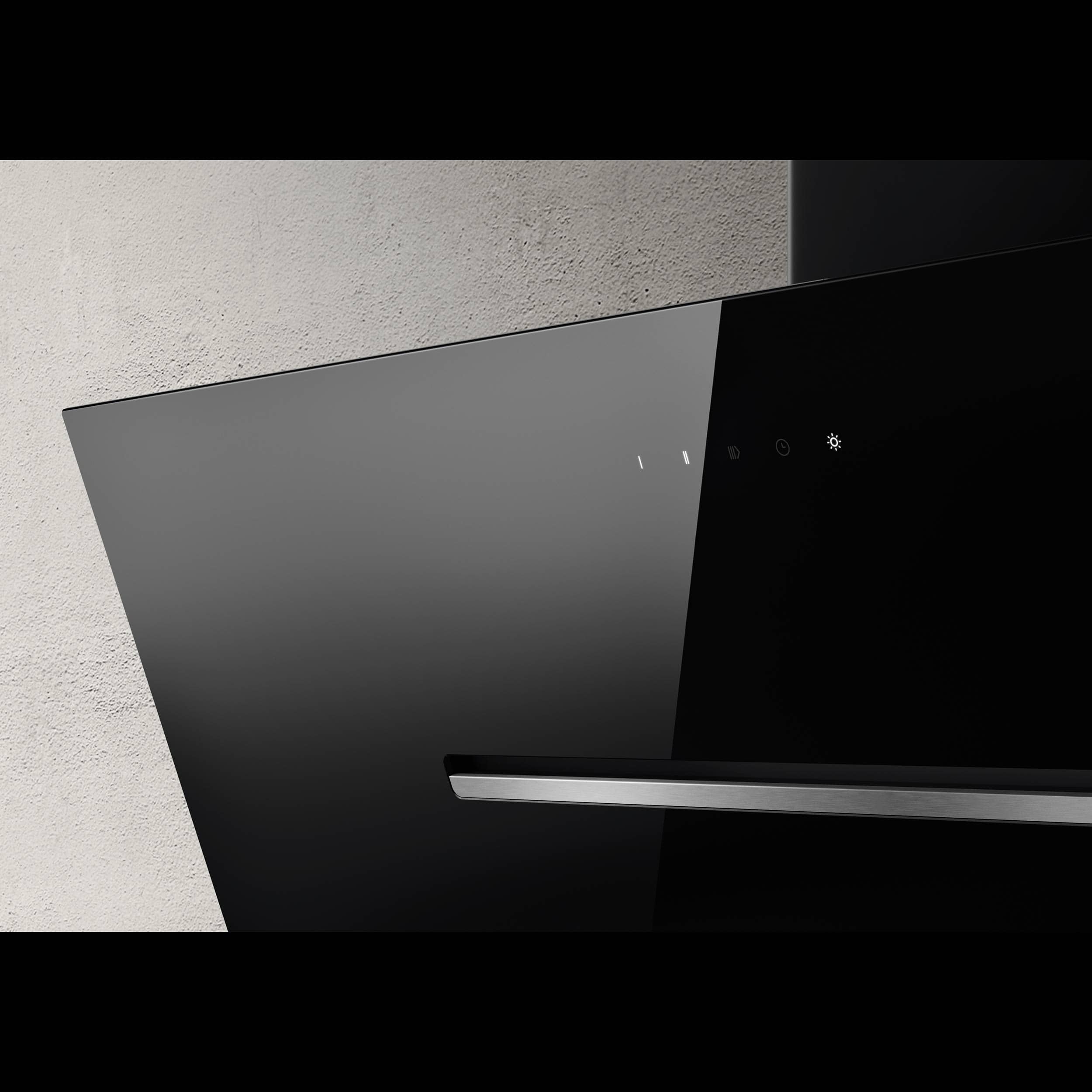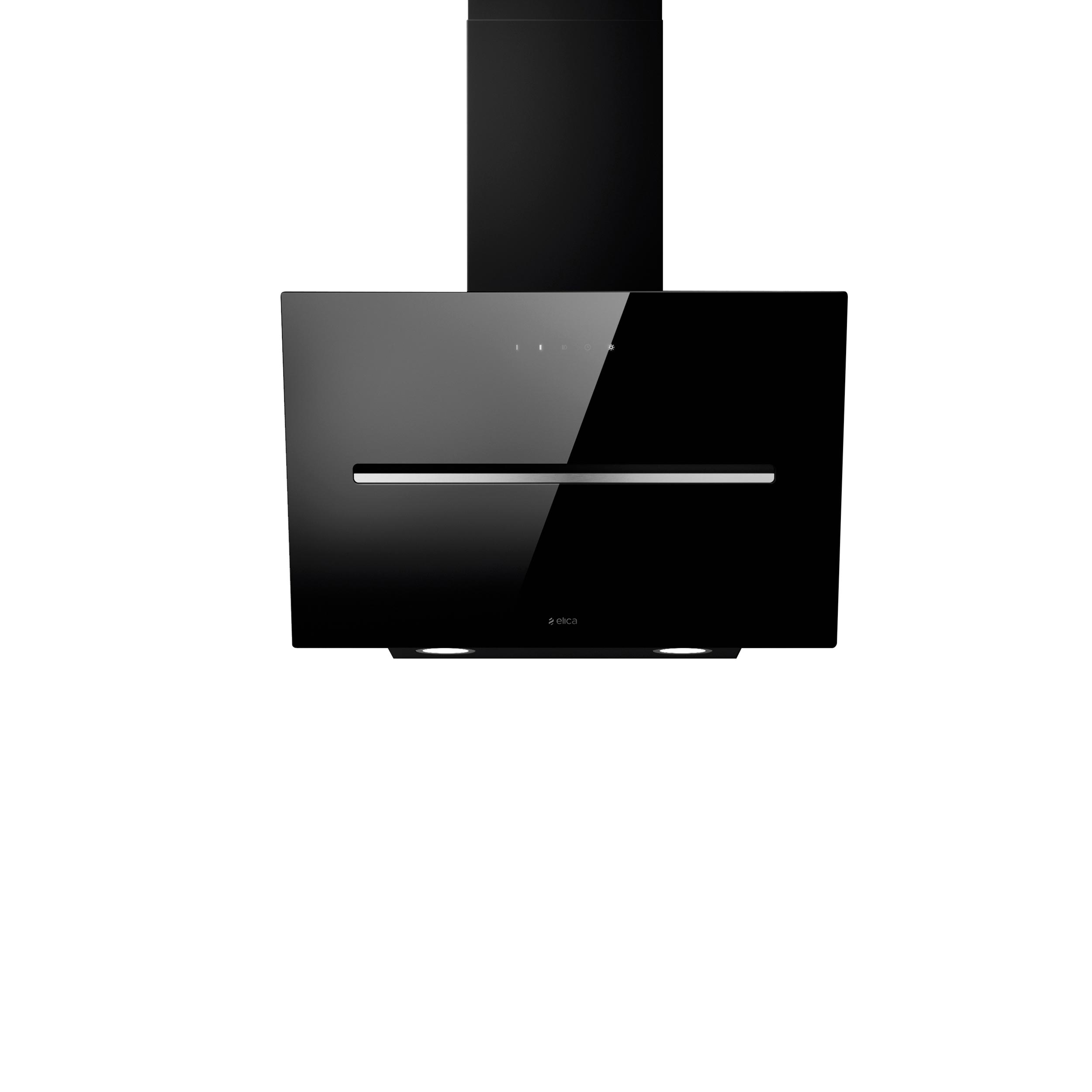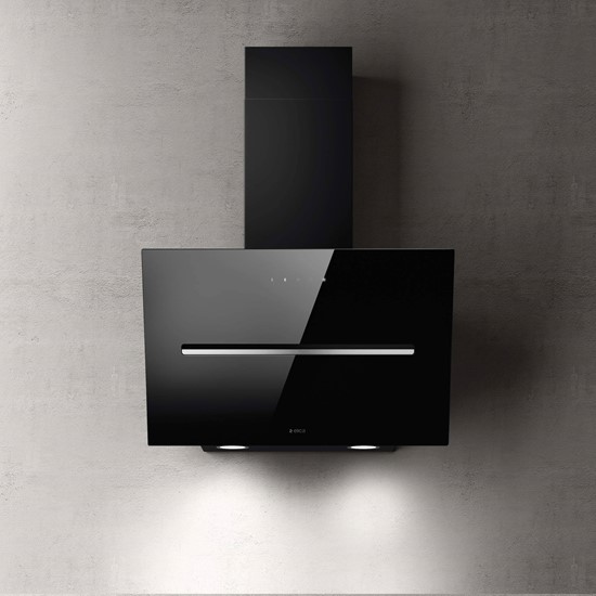 Väggmonterad köksfläkt, vertikal. Med inbyggd motor - Svart glas - 598mm - A