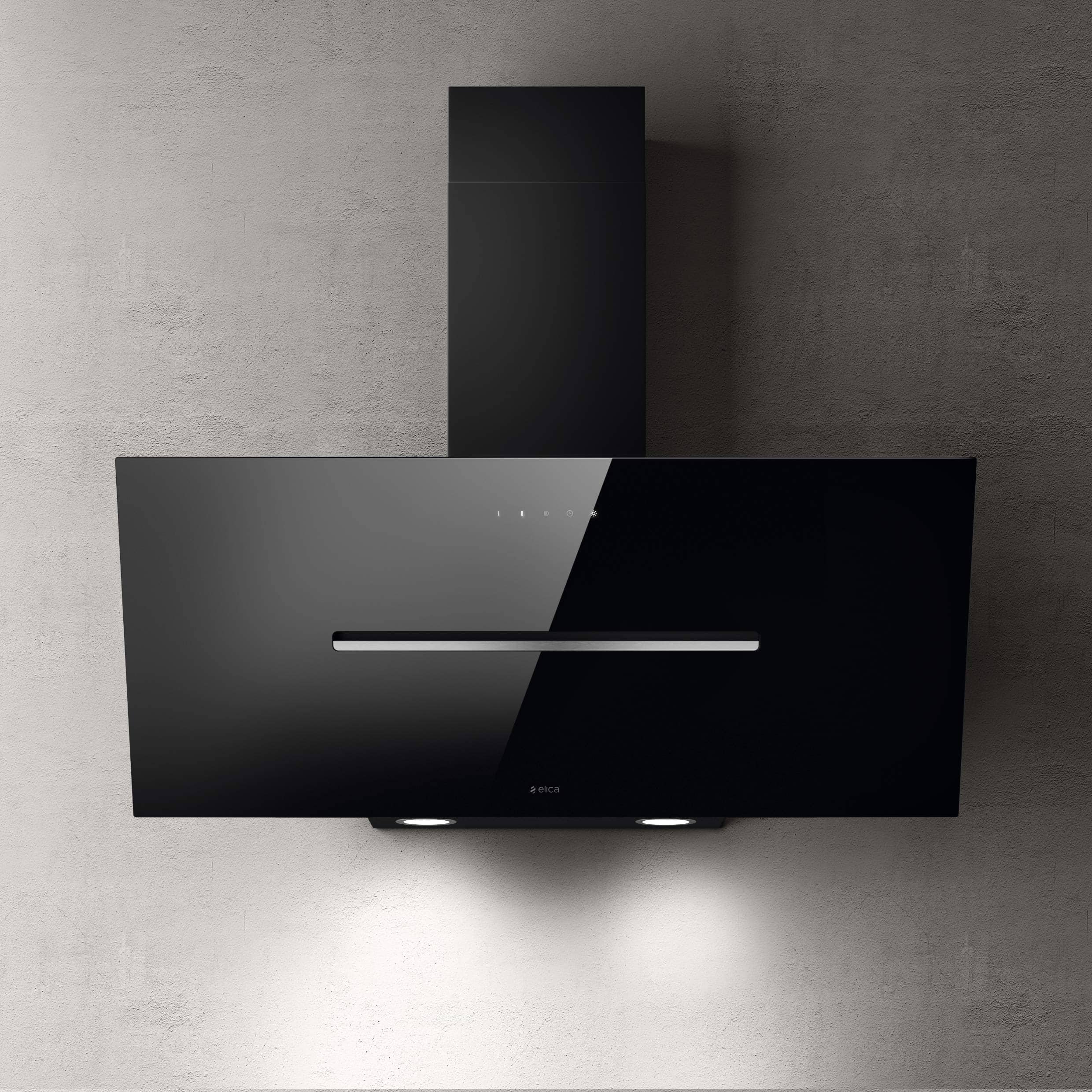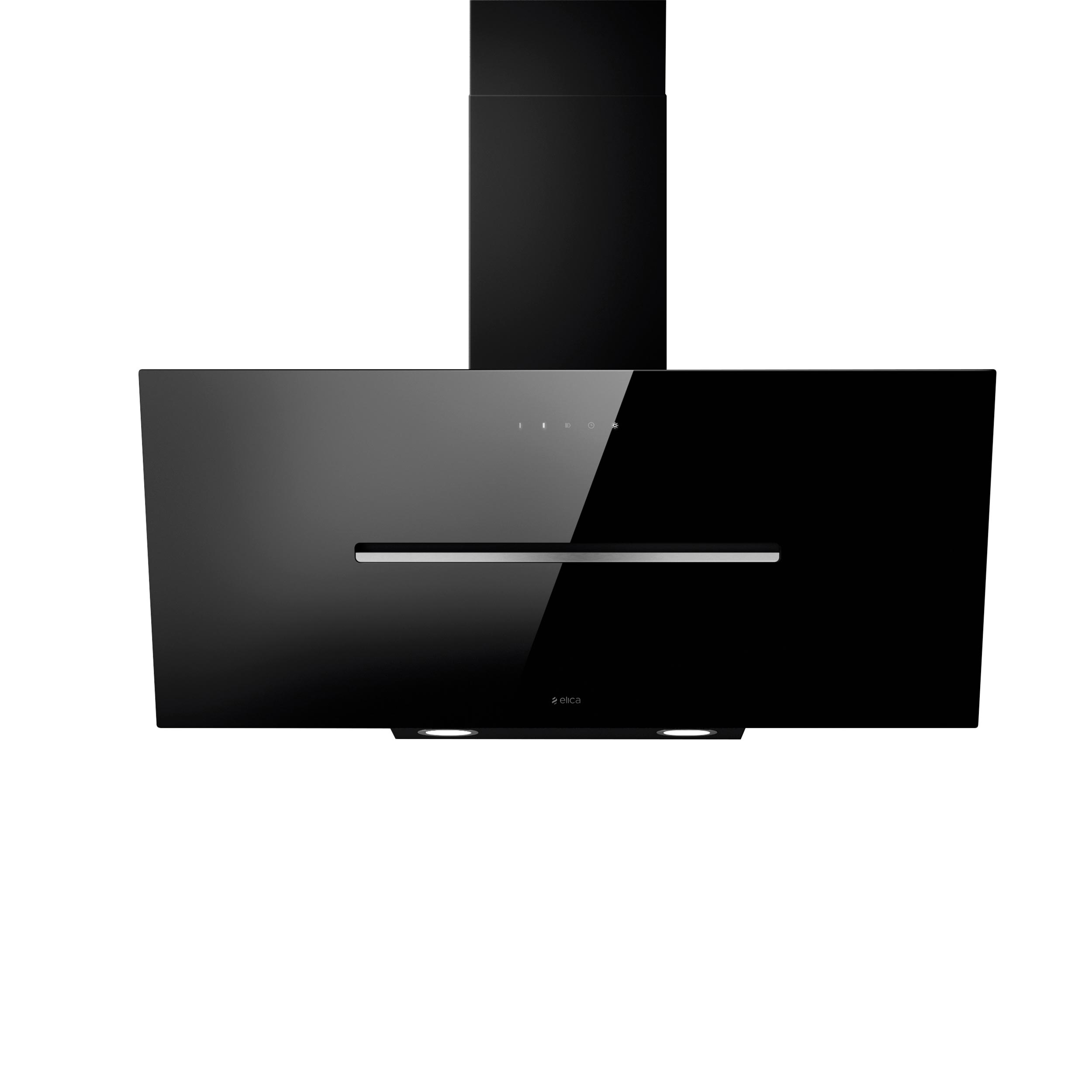 Väggmonterad köksfläkt, vertikal. Med inbyggd motor - Svart glas - 898mm - A