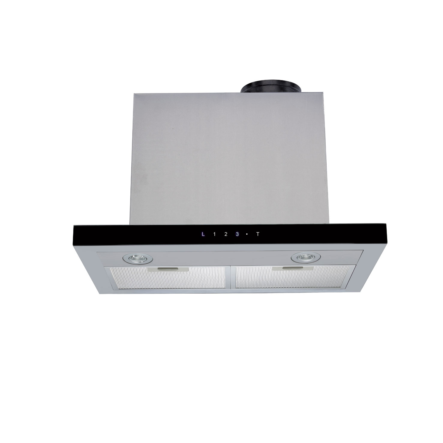 Väggfläkt för inbyggnad i skåp. Med inbyggd motor - Rostfritt stål / svart glas - 600mm