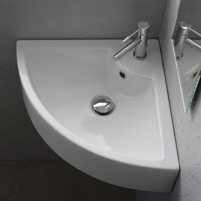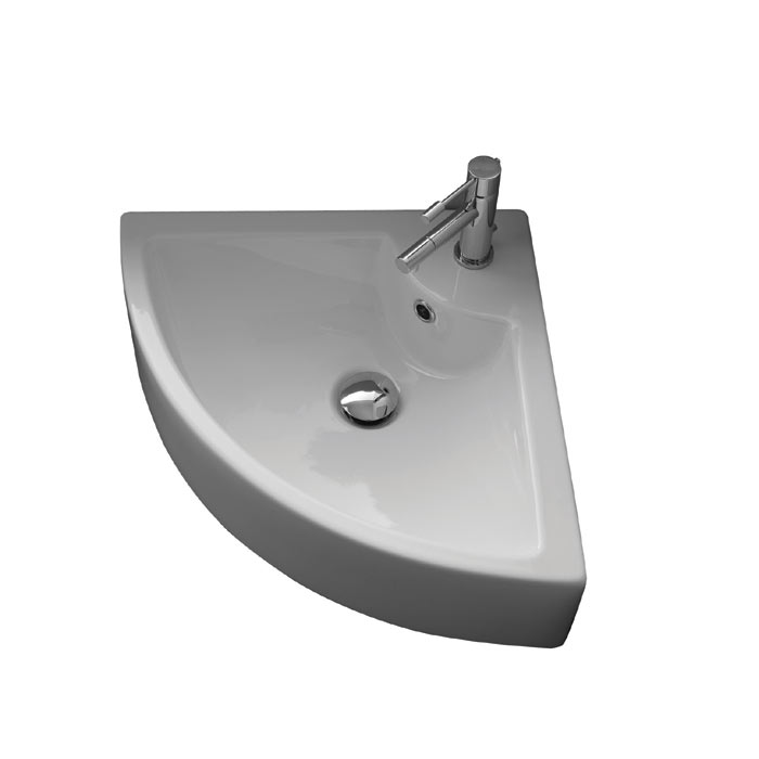 Tvättställ i vitt porslin, För montering på skiva eller på vägg - Vit porslin