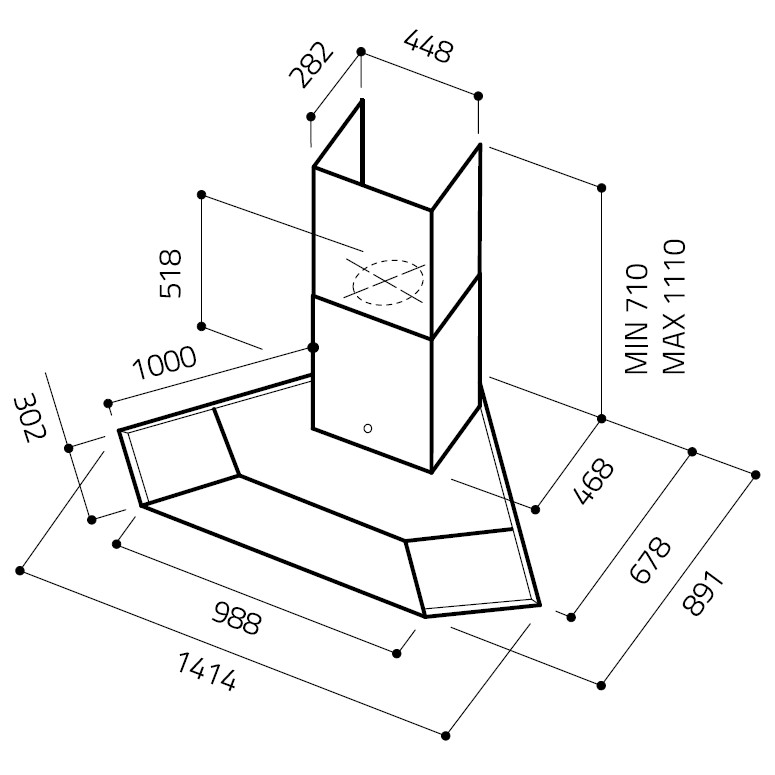 - Produkt (BxDxH) 1414 x 891 x 710 - 1110 mm