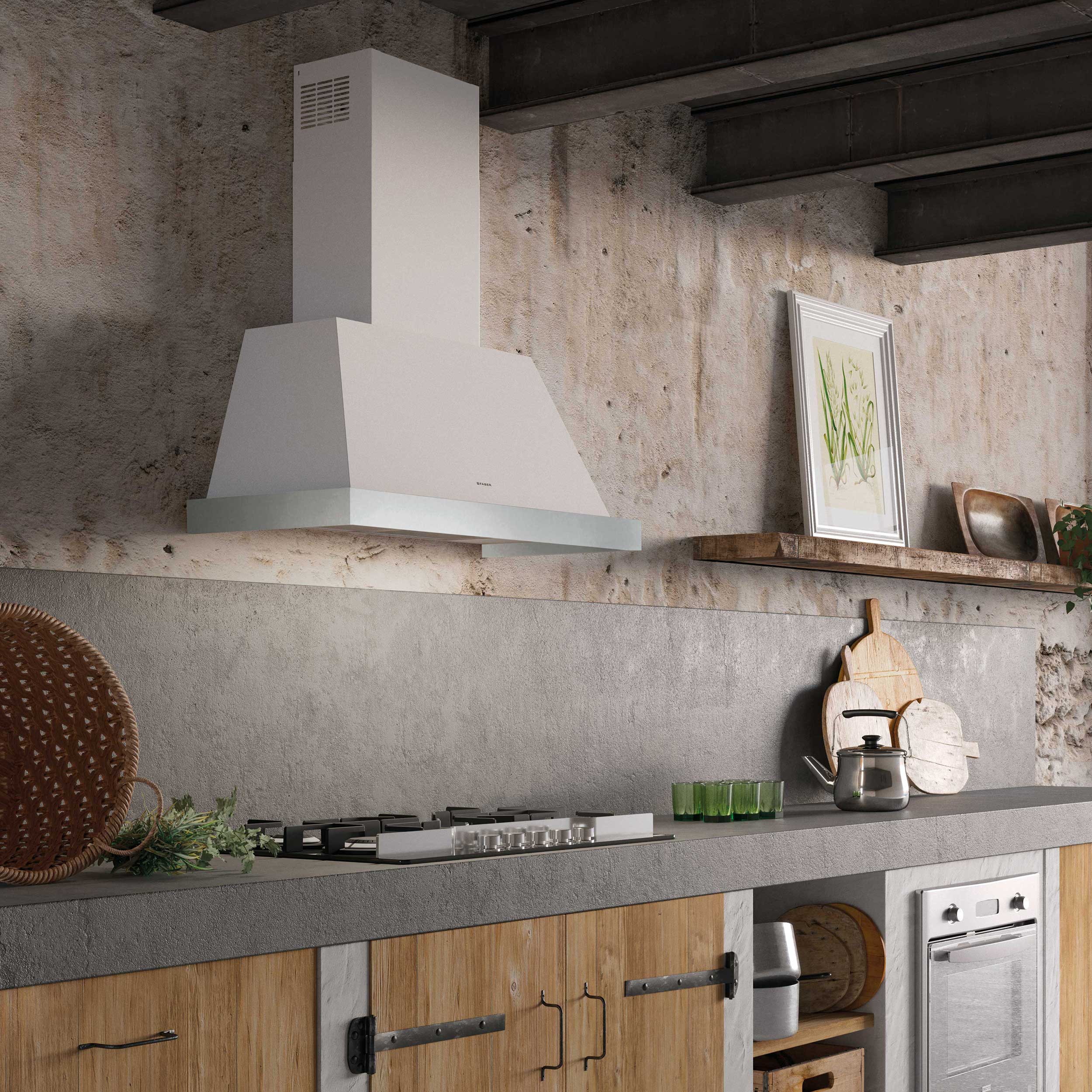 Väggmonterad köksfläkt med ramsats i rostfritt stål. Med intern motor, White Matt/rostfritt stål - Matt vitt/rostfrit stål - 800mm