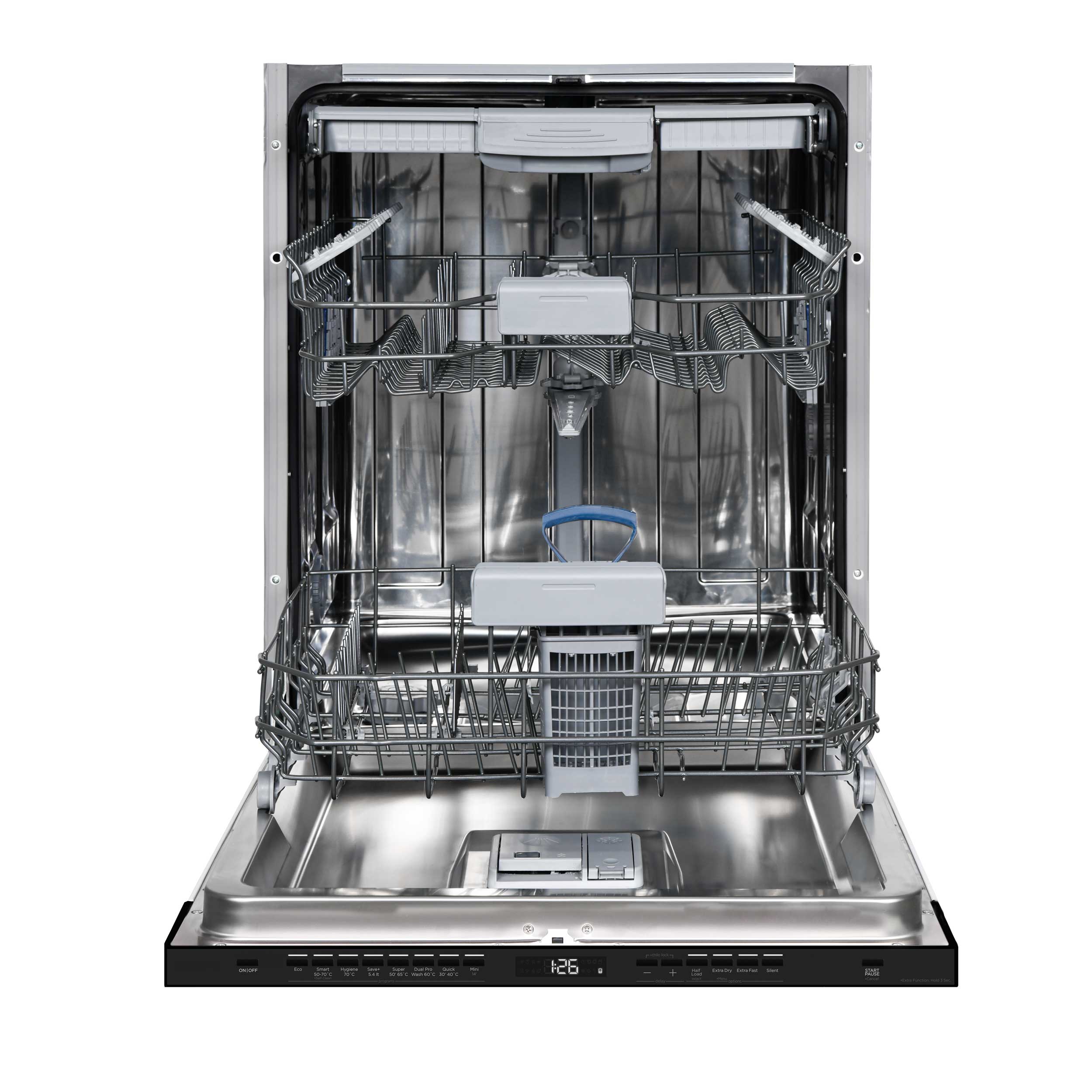 - Övre korg är utdragbar och höjdjusterbar, också fullastad