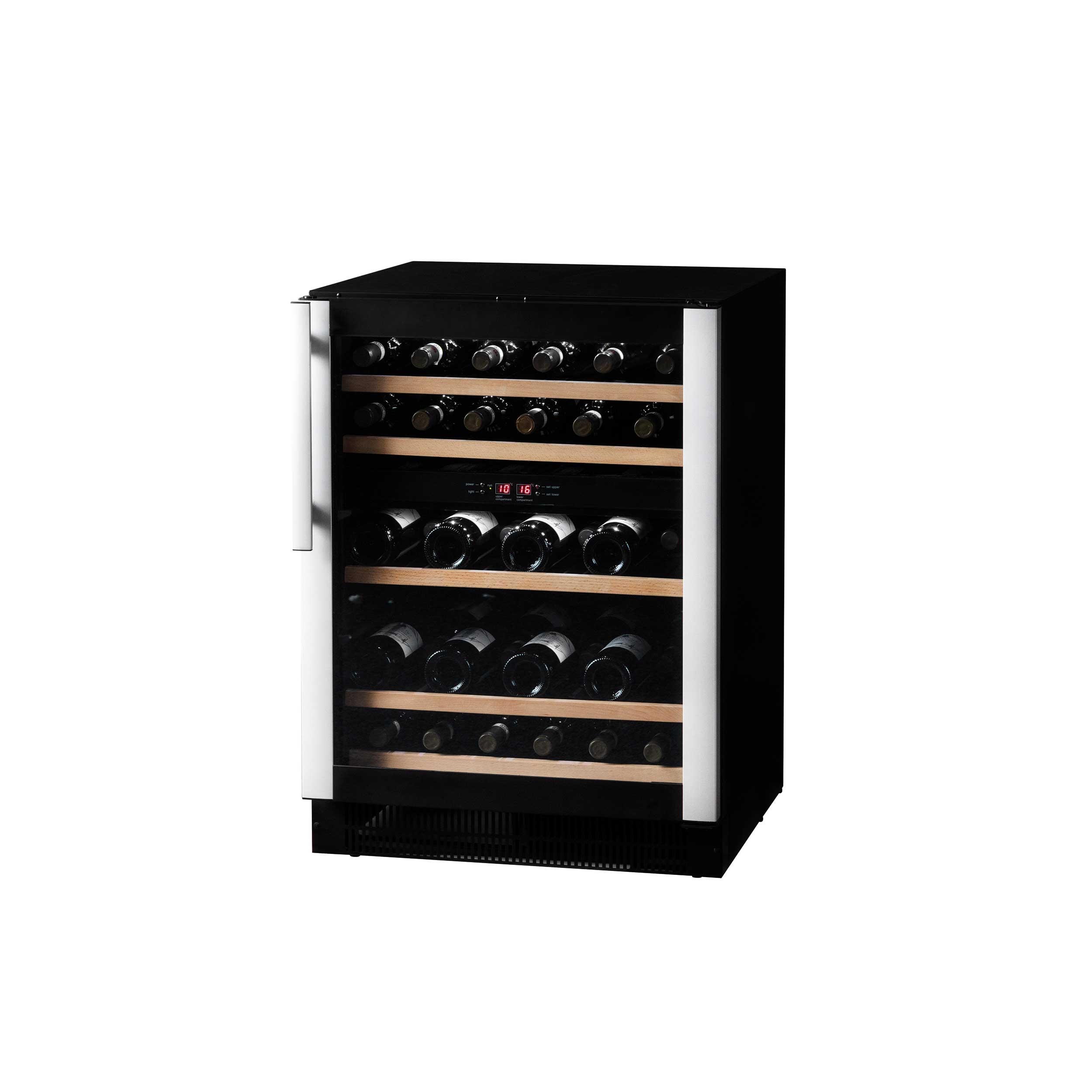Dualzon vinkylskåp 82,0-87,5 cm, 44 vinflaskor - Silver front/Svarta sidor - 595 x 573 x 820-875 mm