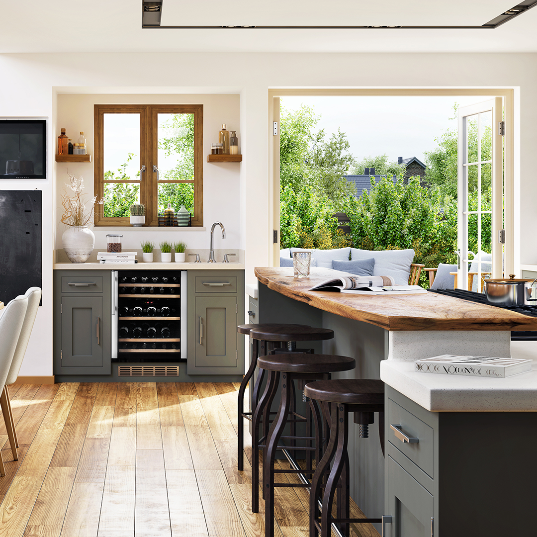 - Märk: Tack vare höjden, kan vinkylskåpet placeras under befintliga skåp. Kom ihåg att läsa instruktionerna först.