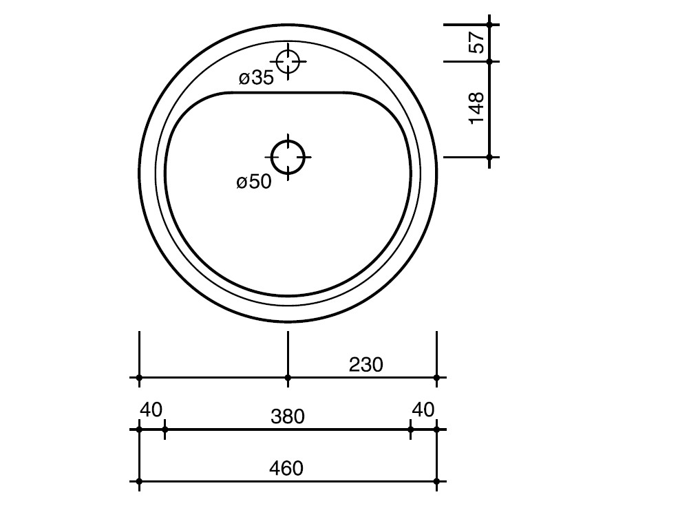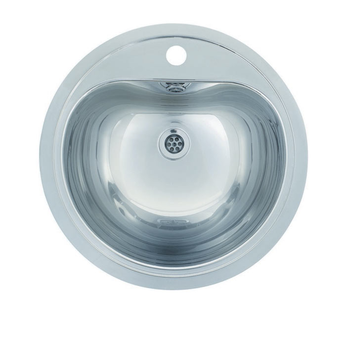 Runt tvättställ i stål, För under- eller planlimning - Högglanspolerat rostfritt stål