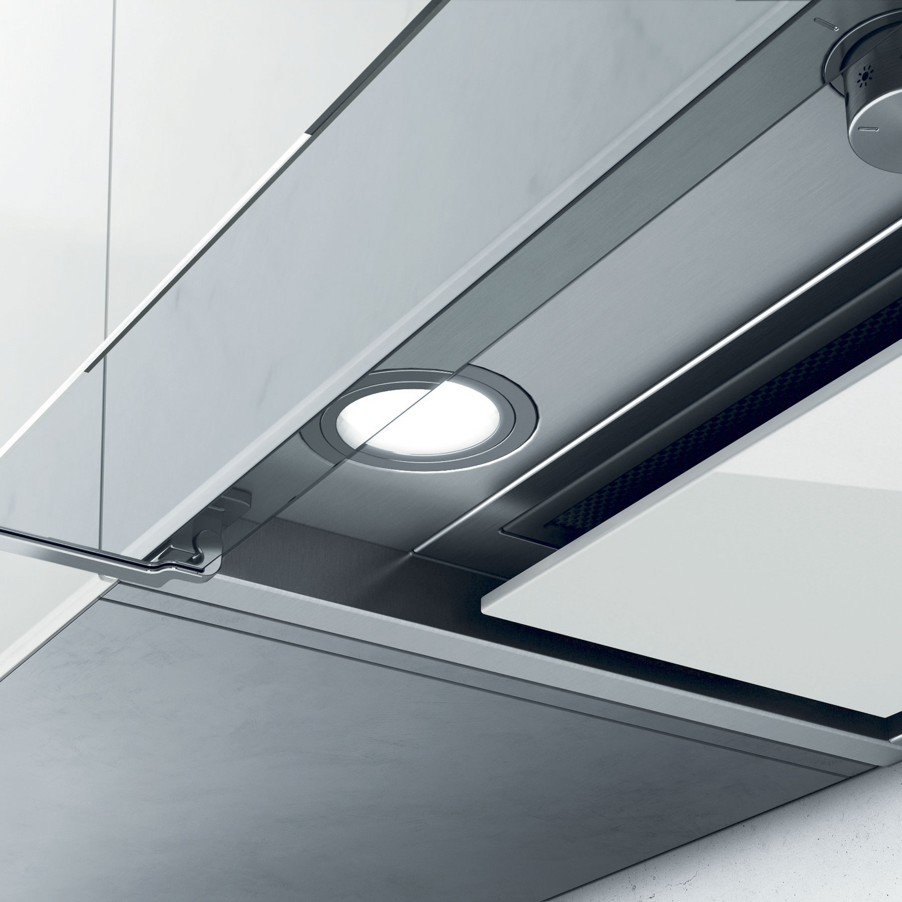 Indsats for indbygning i overskab uden bund. Med intern motor - Rustfrit stål / crystal white glas - 594 mm
