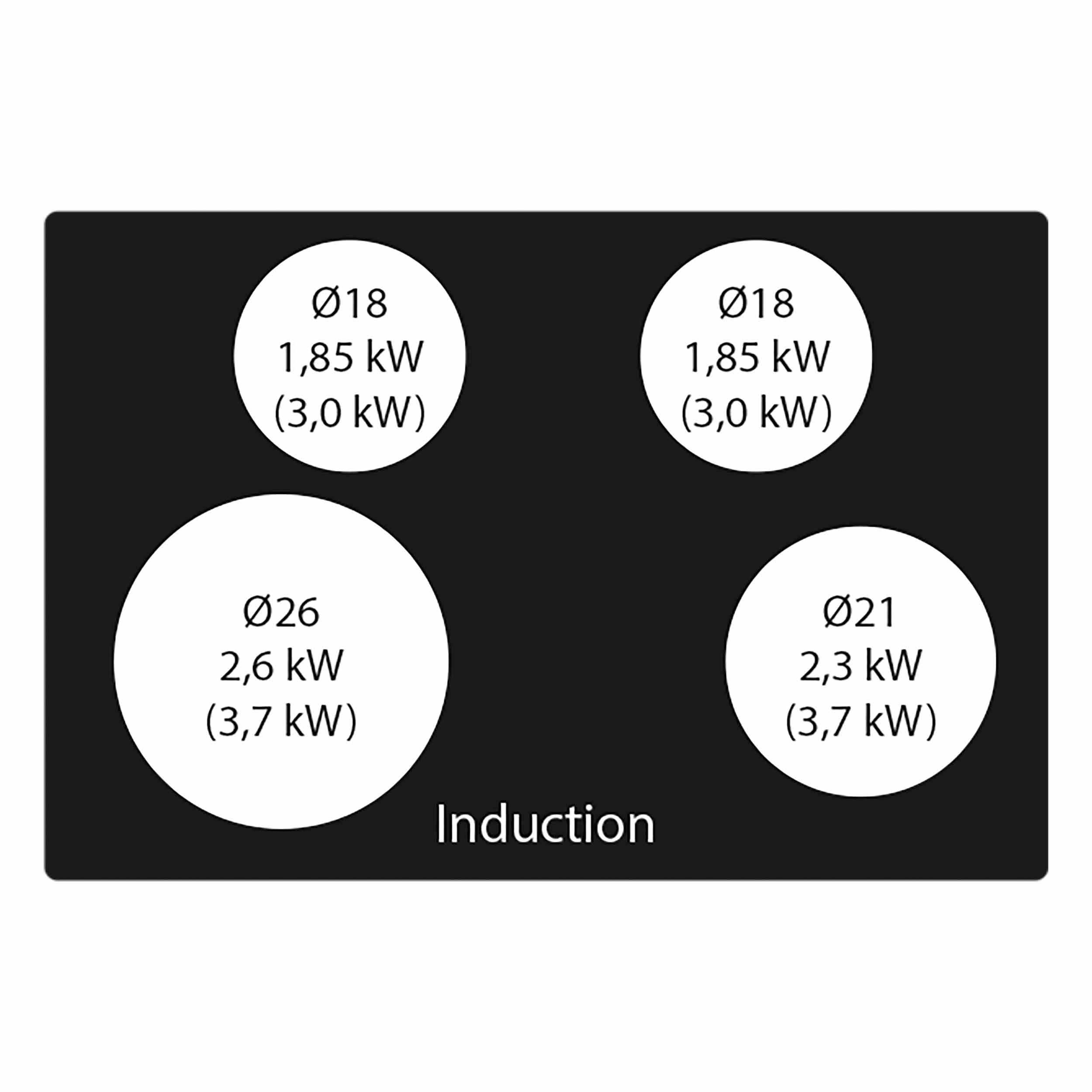 Induktionshäll. Med rak kant för planlimning - Total Black - 780mm