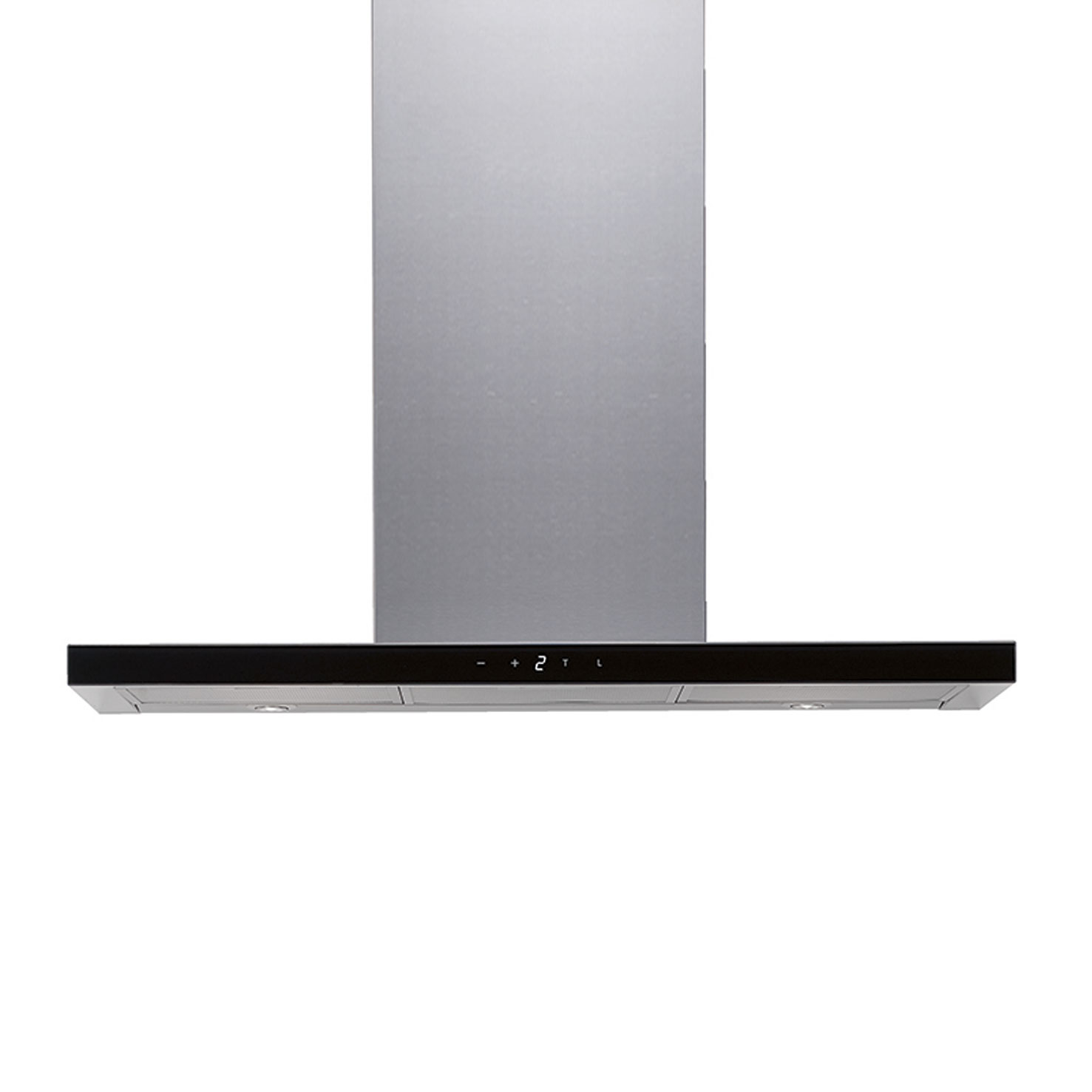 Väggmonterad köksfläkt. Med extern motor för invändig montering - Rostfritt stål / svart glas - 900mm