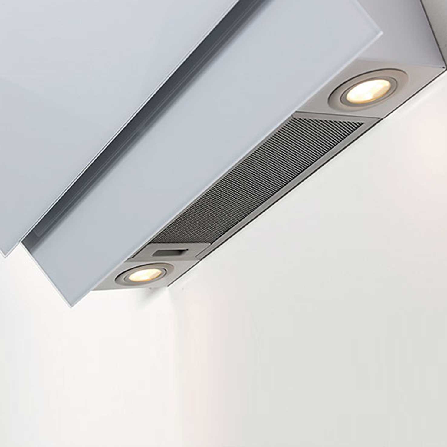 Väggmonterad köksfläkt, vertikal. Med inbyggd motor - Vit / optic white glas - 600mm