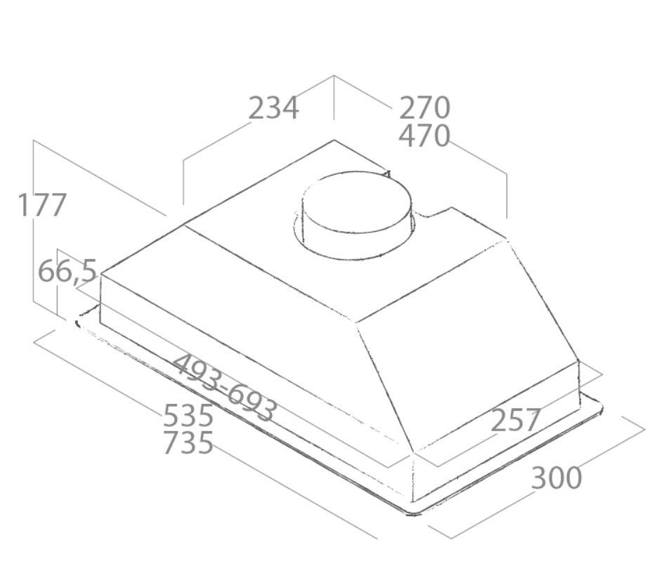 Insats för inbyggnad i överskåp. Modell med inbyggd motor - Grå - 735mm