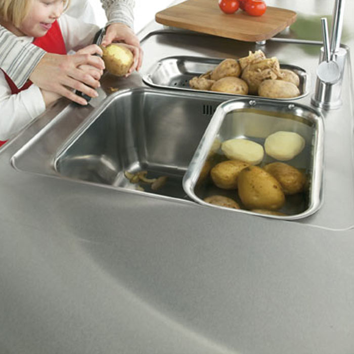 - Seven F, Bänkskiva med diskho. Bänkskiva med 1½ diskhoar Längd - specialanpassning av mått med 5 mm intervall. Plan eller upphöjd kantprofil. Ytan är som standard slät. Dekormönster beställs som extra utrustning. Korgventil kan beställas. Stålbakkant kan levereras för montering. Kanten är 58 mm höjd. Hål för blandare kan beställas