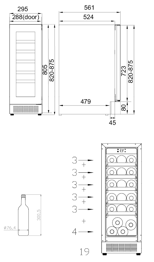 - Flaskkapacitet: Nettokapacitet för max. 19 flaskor styck