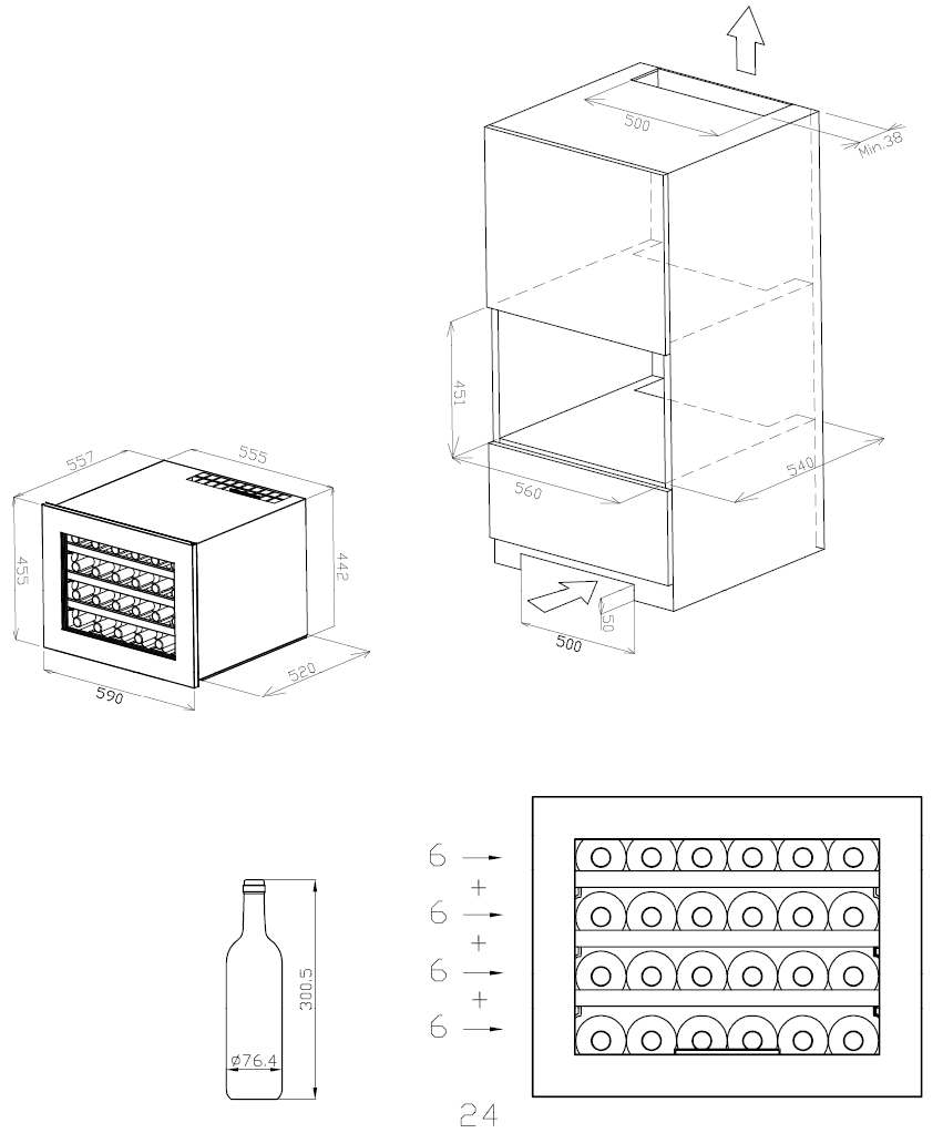 - Flaskkapacitet: Nettokapacitet för max. 24 flaskor styck