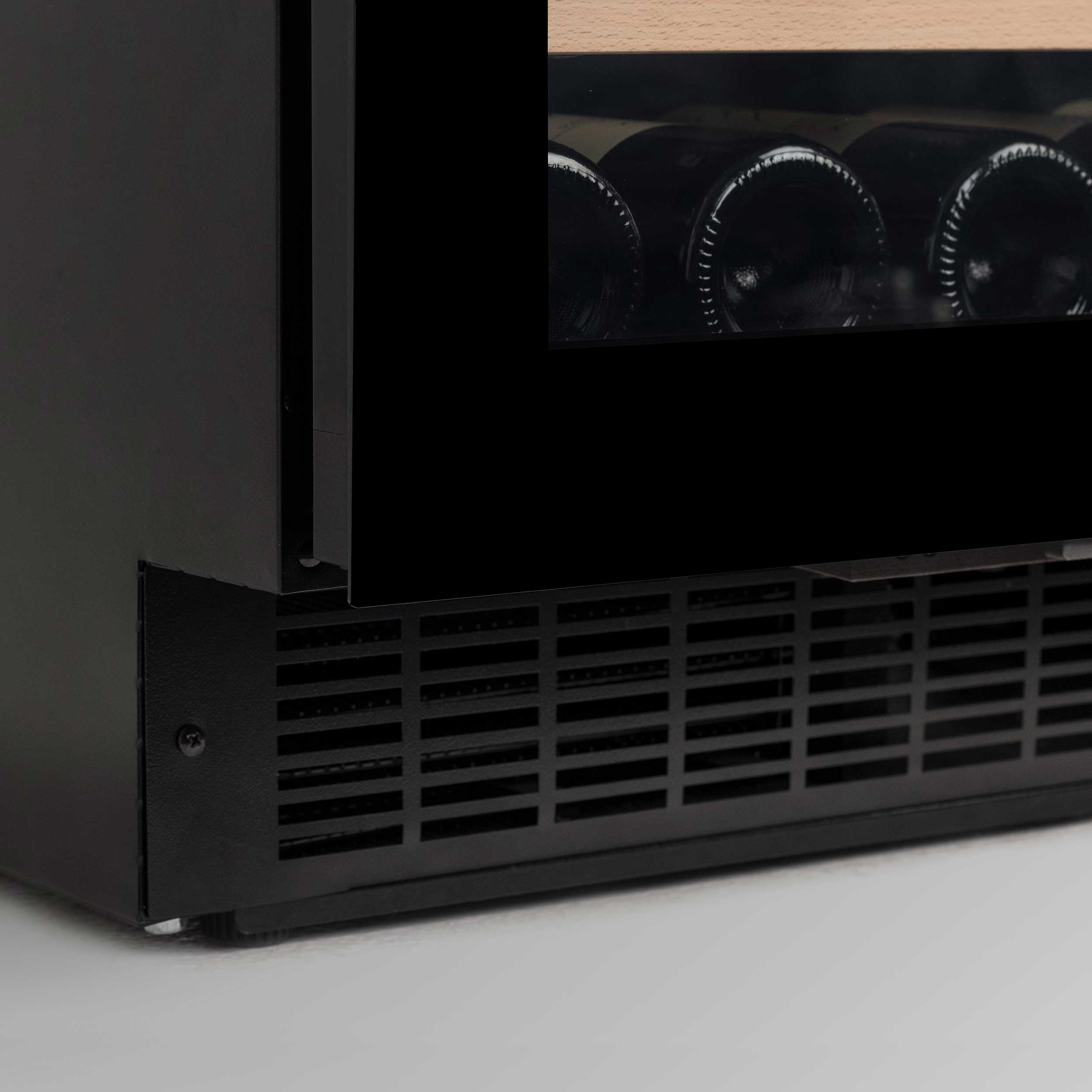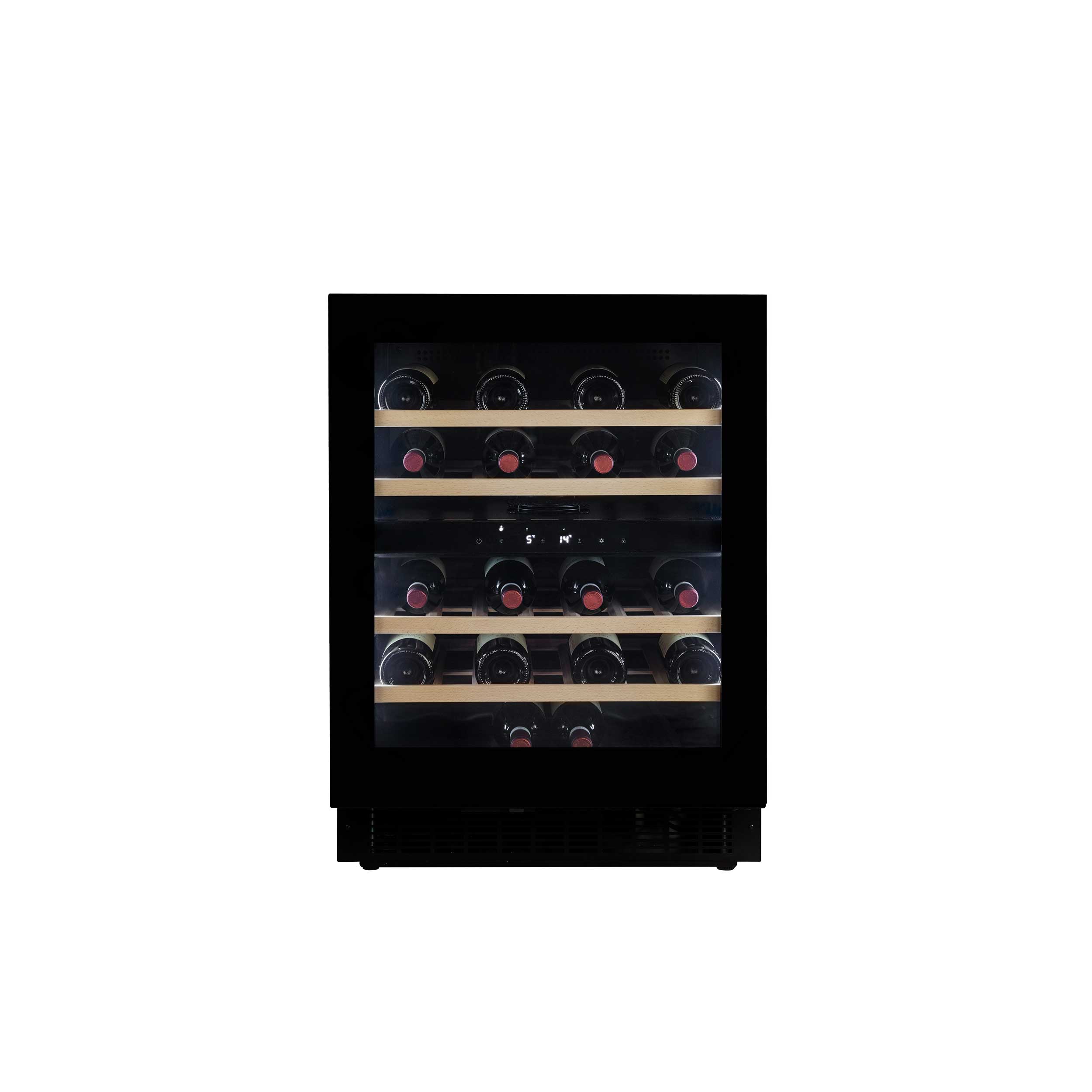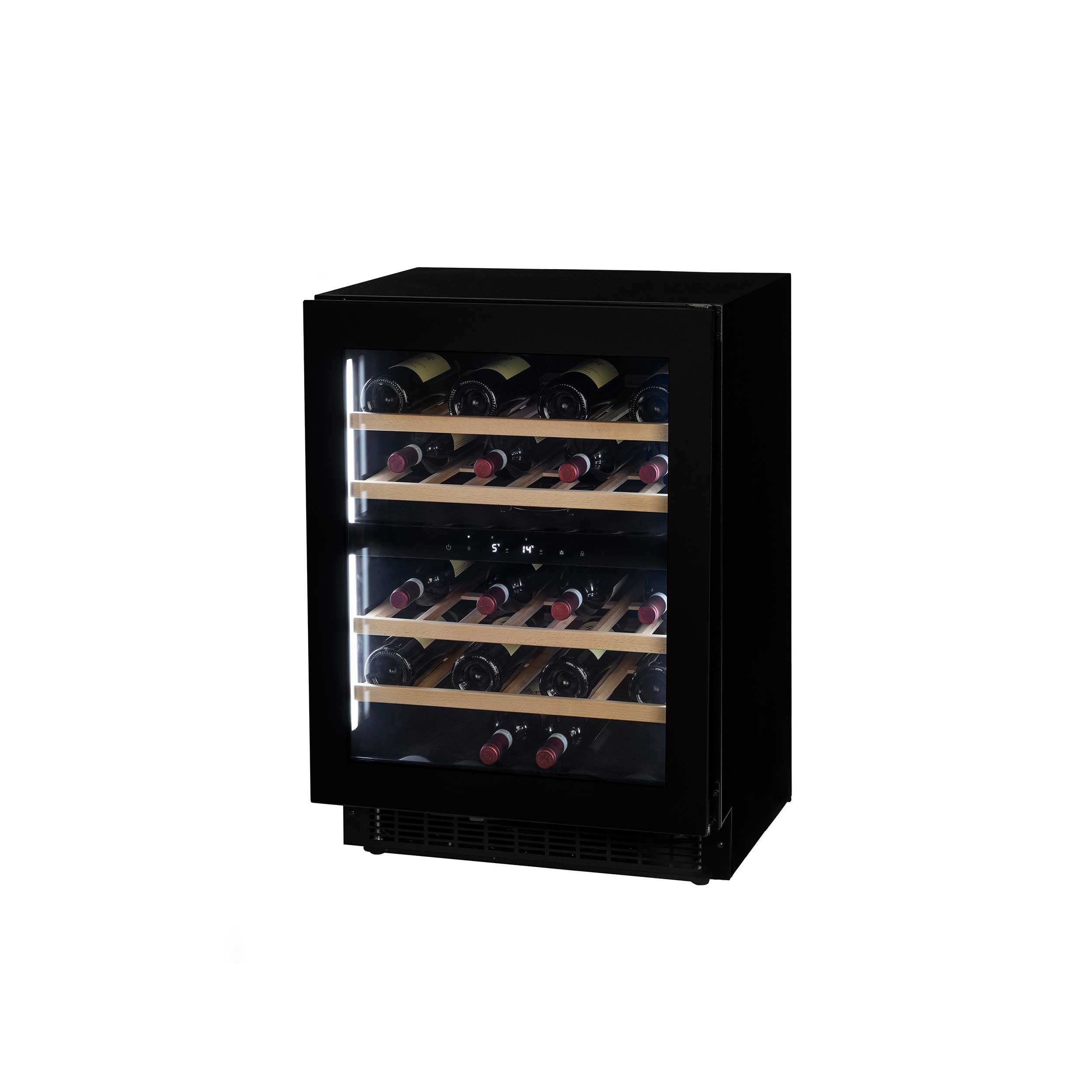 Dualzon vinkylskåp 83,5-92,5cm, Push-to-open, 70cm dörr, 34 vinflaskor - Svart front/Svarta sidor - 595 x 562 x 835-925 mm