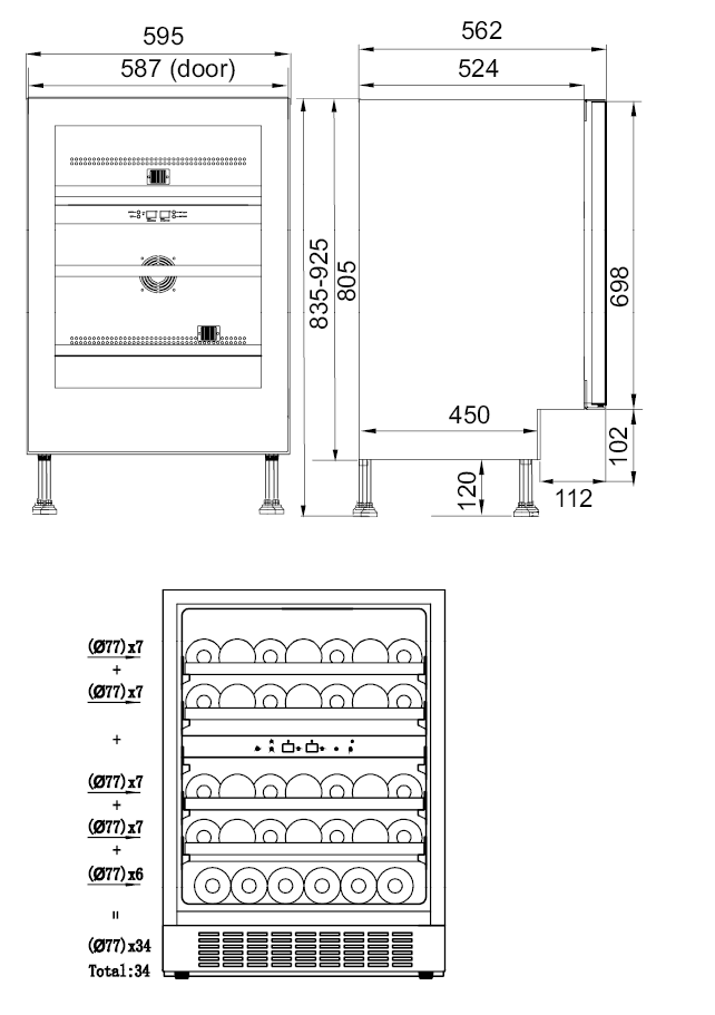 - Mindre vinkylskåp med plats för 34 flaskor. Skåpet har justerbar installationshöjd 835-925 mm, och är lämplig, både som fristående modell eller så kan det byggas under den befintliga bordsskivan. Dualzon skåp med 2 separata temperaturzoner. fläktarna i varje zon ser till att omsluta dina flaskor med luft med en jämn temperatur. Modellen har push-to-open. 70 cm dörr höjd. 5 års garanti vid registrering av produkten.