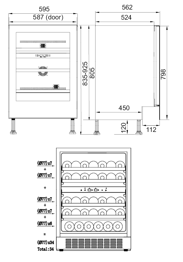 - Mindre vinkylskåp med plats för 34 flaskor. Skåpet har justerbar installationshöjd 835-925 mm, och är lämplig, både som fristående modell eller så kan det byggas under den befintliga bordsskivan. Dualzon skåp med 2 separata temperaturzoner. fläktarna i varje zon ser till att omsluta dina flaskor med luft med en jämn temperatur. Modellen har push-to-open. 80 cm dörr höjd. 5 års garanti vid registrering av produkten.