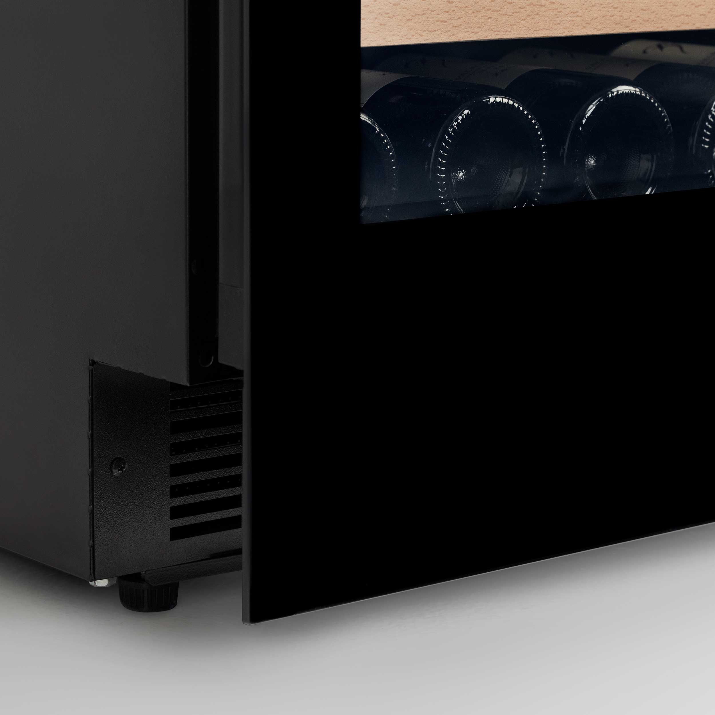 Dualzon vinkylskåp 83,5-92,5cm, Push-to-open, 80cm dörr, 34 vinflaskor - Svart front/Svarta sidor - 595 x 562 x 835-925 mm